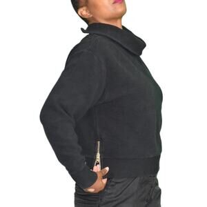 Varley Simon Sweatshirt Black Ottoman Rib Boxy Turtleneck Side Zip Size Medium