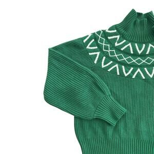 Varley Sweater Womens Small Green Marcie Fair Isle Yoke Knit Pullover Geometric