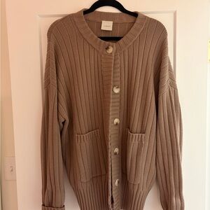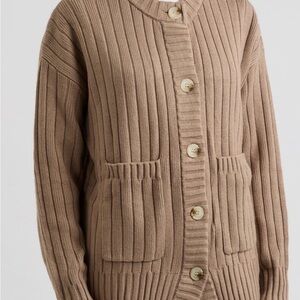 Cozy ribbed cardigan by Varley. Features a button-up front. Perfect for layering.