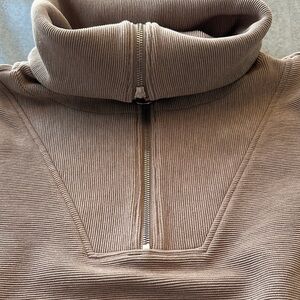 Varley Taupe Ribbed Zip Jacket