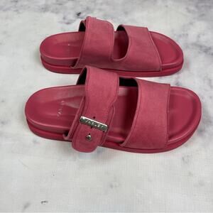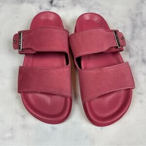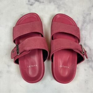 “roma rose” The Latona Suede Slide Sandals from Varley. signature silver bar buckle, memory foam cushioned footbed. leather upper and lining with rubber outsole. EUC - worn only twice - with just a few light scuffs / dirt smudges ( see last photo).