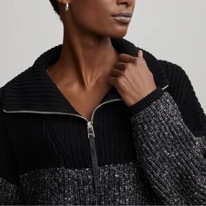Varley Willard 1/2 Zip Knit Sweater, Black and Gray, High Neck, Relaxed, XS