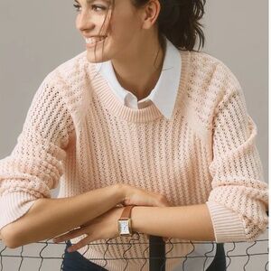 Gently used and in excellent condition Varley Women's Clay Open Knit Sweater Baby Pink Jumper Sz XS.