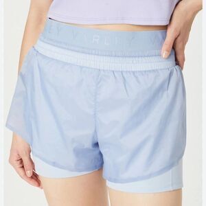 Textured sheer nylon outer short with crossover sides and bonded edges.