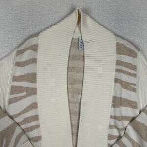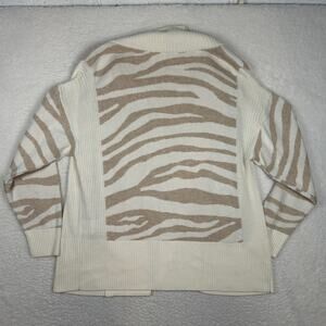 Varley Womens Size M Camrose Cardigan Sweater Zebra Print Merino Wool Tofu Ivory