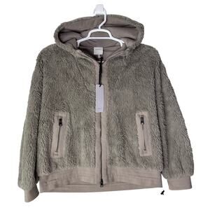 Varley Women's Small Dylan Jacket High Pile Teddy Fleece Full Zip Hood Taupe NWT