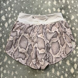 Stylish snakeskin print athletic shorts. Features a comfortable waistband and interior liner. Worn twice and in great condition!
