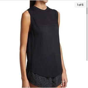 Varley Morrow Black Tunic Tank Slit Neck Perforated Mesh XS/S