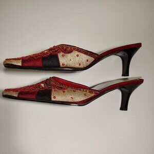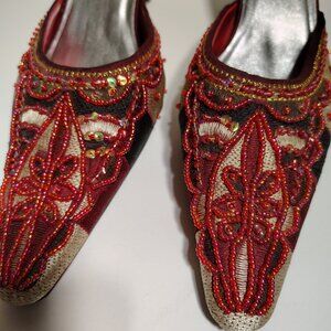 Varsavia Viamara Pointed Toe Indian Style Embroidered Beaded Low Heel