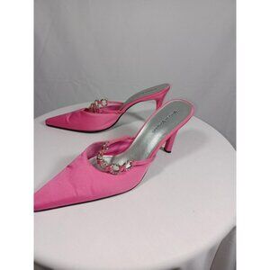 Varsavia Viamara Shoes Womens Size 8.5 Fuchsia Pink Satin Mule Heels Rhinestone