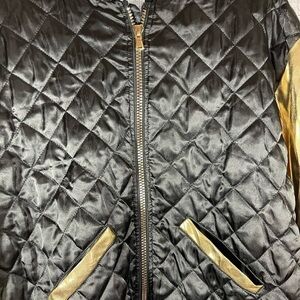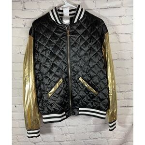 spirit halloween varsity jacket. Black/Gold.