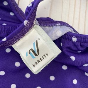 Varsity Cheer Polka Dot Sports Bra Purple White small