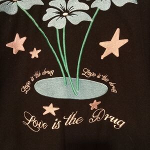 #Streetwear #StreetwearStyle #VarsityJacket #LettermanJacket #VarsityStyle #PreppyAesthetic #CollegiateStyle #VintageInspired #Glam #Rock/Art #Rock (related to the "Love is the Drug" phrase, a song by Roxy) #EmbroideredFloral