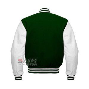 Varsity Letterman Baseball in Green Wool and Genuine White Leather Sleeves Jacket, Bomber Jacket, Fashion Jacket, Stylish Jacket SS-413V