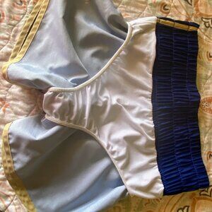 I found these stylish Varsity Spirit royal blue high-waisted boxing shorts with gold trim at a local second-hand store.