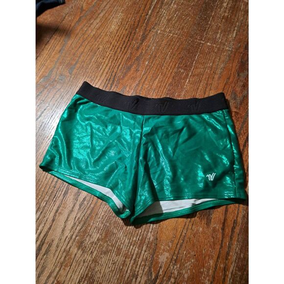 Varsity Spirit Shimmer Green Cheer Shorts Medium Elastic Waist Athletic Dancer