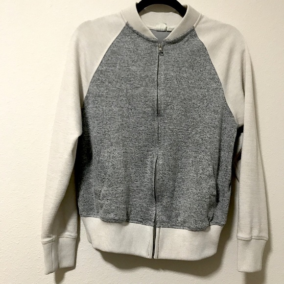 Cream/beige sleeves and gray heather