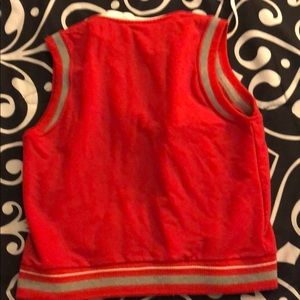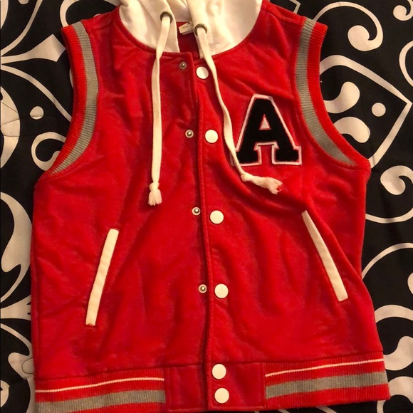 Varsity style vest. Gently worn. Has the letter A on it. Very popular style for winter weather. Button down not zipper. Perfect condition