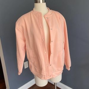 Size Medium. Oversized fit, Vintage. Color is a peachy coral. Soft and warm on the inside.