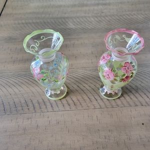2 hand painted voses floral antique style. 6 inch. both are $40 single they are $25