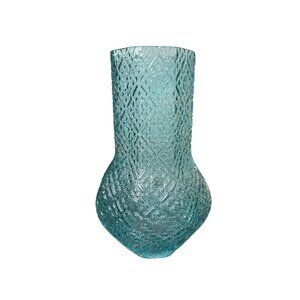 Vase Glass NEW Aqua Blue 8 Sided Unique Design & Shape Textured Outside 12”
