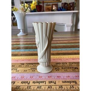 Vase Lenox Embossed Daffodil 24k Gold Scalloped Edge Fluted Ivory Porcelain Vase