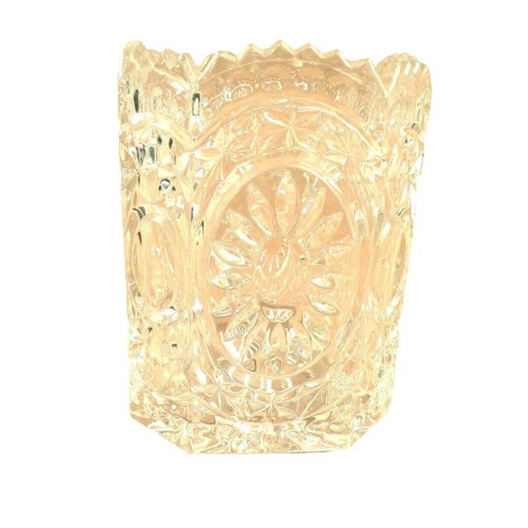 Vase Ornate 8 Panel Sides Clear Glass Embossed Bird Design Saw Tooth Rim