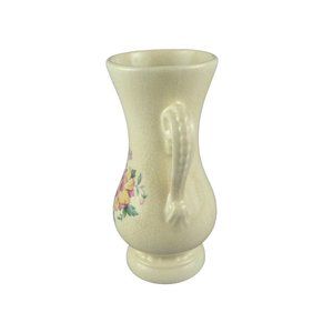 Vase Royal Copley Floral Design Beaded Double Handles 6" Tall