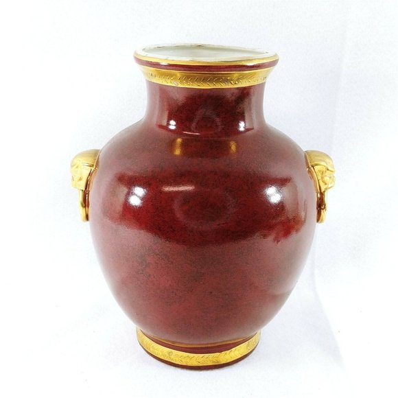 This ceramic vase table lamp base boasts a beautiful burgundy finish with gold accents, creating a vintage aesthetic. Perfect for traditional home decor, this 12"H piece is unbranded.