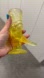 Unique vintage glass vase in a vibrant yellow. Features a hand design with intricate details.