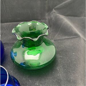 Vase lot 3 private collet 45yr’s WV cobalt,ruffle top anchor hocking emerald