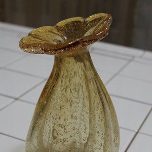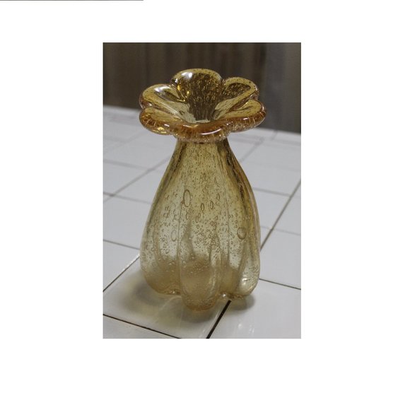 Vases Murano Vintage Hand Blown Amber Glass in Gold with Controlled Bubbles Home