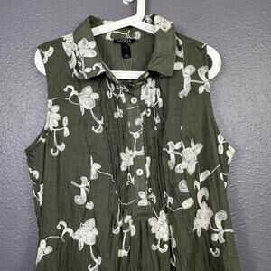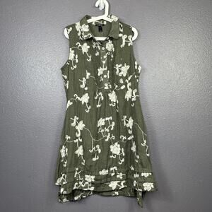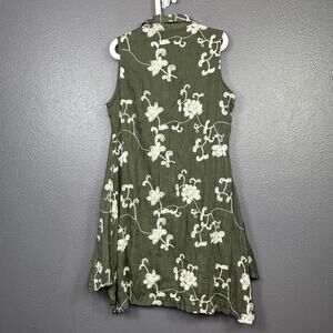Vasna Linen Blend Dress Size Large Floral Embroidered Boho Green Sleeveless NEW
