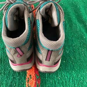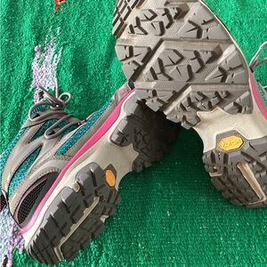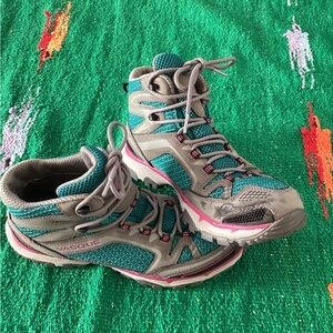Vasque athletic shoes for women. Teal mesh with gray overlays. Pink accents for a stylish touch. Perfect for active adventures.