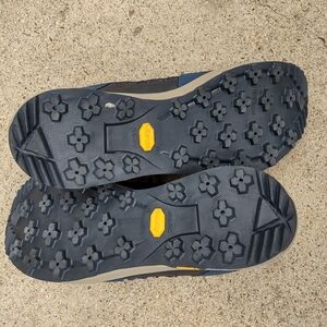 Vasque men's trail running shoes. Worn only a few times. Sole inserts have been removed, as shown. Code on tongue says 7326. The midsole looks to be tan/gray color. Slight scuffs on toes as shown in photos.