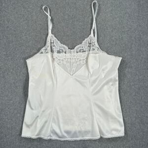 Vassarette Lace Trim Cami Slip Top Women's Large Cream Lingerie Y2K Adjustable
