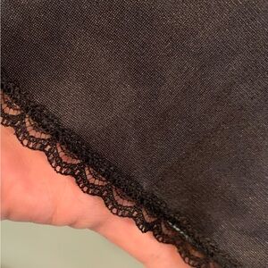 This elegant 32” long, vintage black slip is perfect for any occasion. Its sleek design offers a timeless feel that pairs well with any skirt or dress. It is made with nylon and a lovely lace trim. A must-have addition to your wardrobe of intimates.