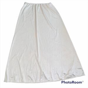 Vassarette Underneath it All vintage elastic waist nude half slip size large. 13" waist (not stretched), length 35"