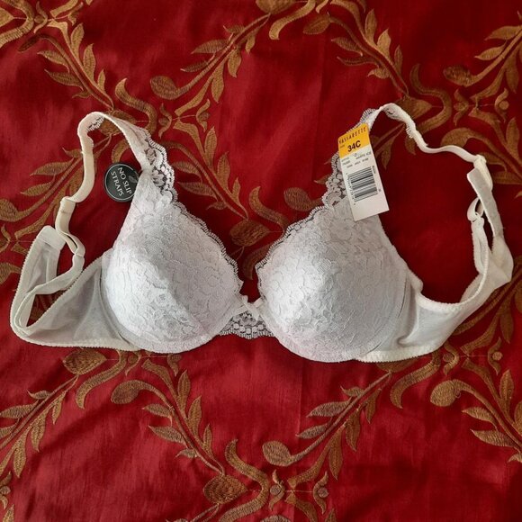 Vassarette White Lace Push Up Bra, 34C, Underwired, New with Tags attached.
