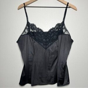 Vassarette Women Cami Top XL Black Lace Trim Fairy Grunge Whimsygoth