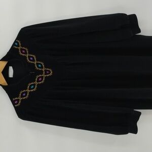 Vassarette black velour with gold stitching housecoat moomoo size large vintage
