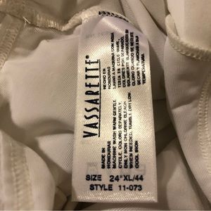 Vassarette slip, white knee length, stretchy with a 10” side slip & lace waist