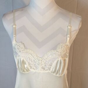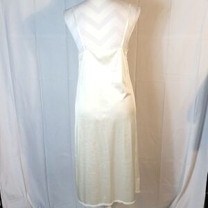 This cream colored nylon with lace trim Vassarette midi slip is a size 34 26" / 40. It has adjustable spaghetti straps. In excellent condition. All offers are welcome.