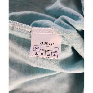 Vassari Los Angeles, Designer Shirt, V-Neck, Loose Cut Trim, Aqua, Rare Thread Design, Short Sleeve, Cotton, Spandex, Machine Washable