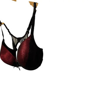 Vassartte 42C Sexy Underwire Bra Dark Romantic Red Black