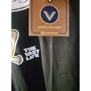 The Vast Life Surf Graphic T-Shirt in size Large is a stylish and comfortable addition to any man's wardrobe. Made of breathable cotton knit fabric, this black shirt features a cool surfer character design that is perfect for beach or streetwear. With a regular fit and short sleeves, this shirt is suitable for all seasons and occasions, making it a versatile and trendy choice for those who appreciate hipster, designer, or outdoor styles. Easy to care for with machine washable instructions, this T-shirt is a great choice for anyone looking to add a touch of bohemian or grunge flair to their look.