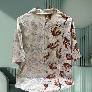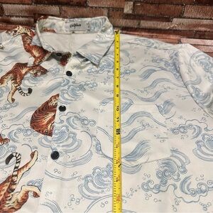 Vatpave Mens Stylish white shirt featuring a bold tiger print. Perfect for making a statement.size XL measure armpit to armpit 26’ shoulder from down 30’1/2 short sleeve 10’1/2 New out tags
