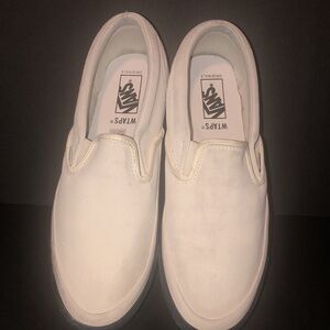 Vault by Vans Classic Slip On LX x WTAPS Collaboration Size 13 Appear never worn Little to No wear Looks like they were ought and the left in the closet. White Leather suede upper. With black WTAPS logo trim. Elasticized gussets, Rubber honeycomb outsole