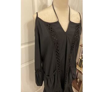 Vava USA by Joy Han Esme Line Ruffled Hem Cold Shoulder Black Dress, M