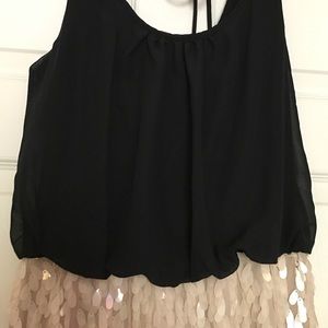 This dress has the most beautiful "mother of pearl" colored sequins with flowy black top